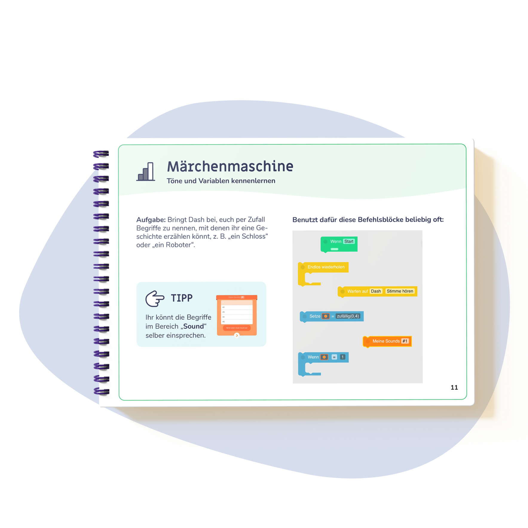 Dash ist ein kleiner Roboter, der mit der Blockly App programmiert werden kann. Die Lernkarten dienen euch als Einstieg in die Programmierung mit Dash und Blockly und können ohne Vorkenntnisse genutzt werden.