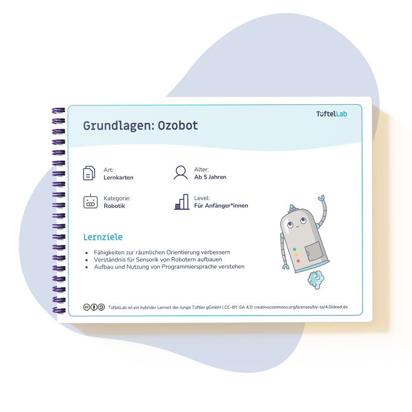 ab 6 JahreDer Ozobot ist ein kleiner Roboter, der über Farbcodes programmiert wird. So können bereits Kinder im Grundschulalter erste Einblicke in Programmierung und Robotik erhalten. Lasst den Ozobot tanzen, spielt Wettrennen, entwerft im Team Labyrinthe und vieles mehr! Die Programmierung des kleinen Roboters kann sowohl auf analoge Weise mit Stiften als auch auf digitale Weise mithilfe der visuellen, blockbasierten Programmiersprache OzoBlockly erfolgen. Unsere Lernkarten unterstützen euch beim Einstieg in die Oberfläche und die wichtigsten Funktionen des Ozobot. Erkundet das Programmieren mittels Stift und Papier und Ozoblockly!