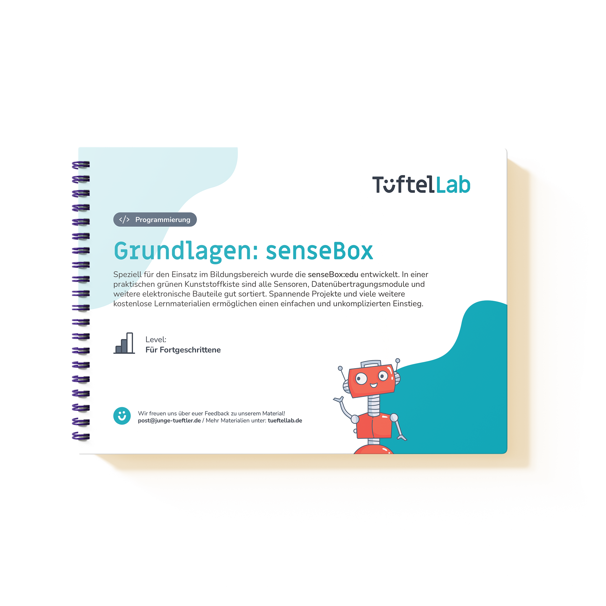 Mit den senseBox Lernkarten lernt ihr das Citizen Science Kit senseBox kennen und entdeckt die Welt der Sensorik, Programmierung und Datenerhebung. Wir beginnen mit einer Einführung zu den wichtigsten Funktionen der senseBox und ihrer Sensoren, danach erkundet ihr in verschiedenen Einstiegsübungen und ersten Projektideen die faszinierende Welt der Mikrocontroller und Umweltdaten. Unsere Lernkarten dienen euch dabei als Einstiegshilfe und können ohne Vorkenntnisse genutzt werden.