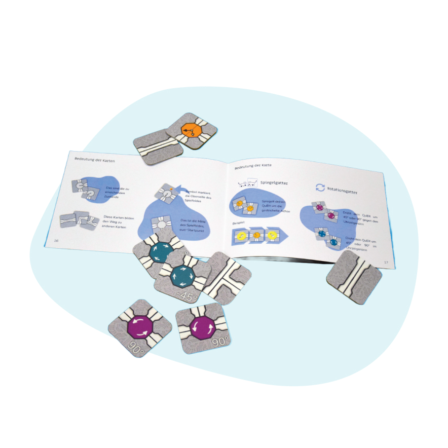 ab 12 JahreKlassische Computer arbeiten mit Logikgattern. Bei Quantencomputern verhält es sich ähnlich, jedoch kommen hier Quantengatter und QuBits (Quanten-Bits) zum Einsatz. Baut euer Quantenlabyrinth so, dass ihr mit euren QuBits die richtigen Gatter erreicht. Schließlich könnt ihr nur Punkten, wenn euer QuBit durch die richtigen Gatter rotiert und gespiegelt wurde, bevor es im Zielzustand ankommt. Probiert das Spiel am besten einfach selbst aus!
