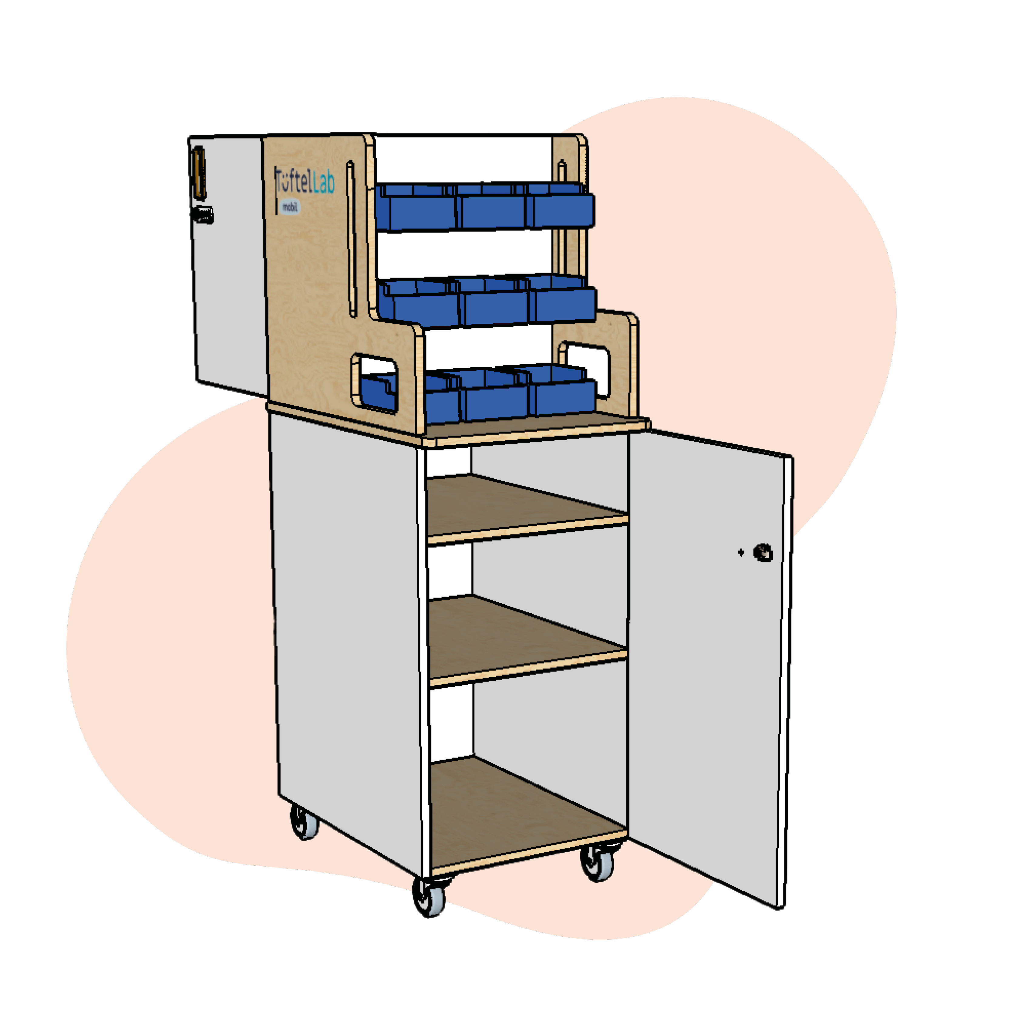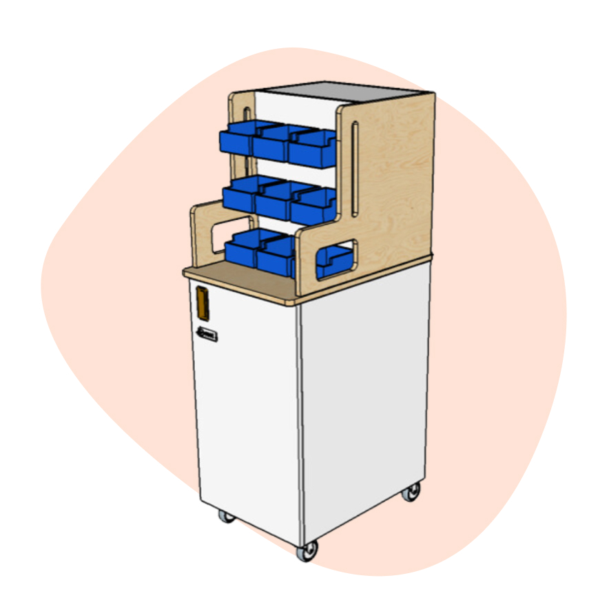 Unser TüftelSchrank Mobiler Makerspace für euere Bildungseinrichtung ist extrem flexibel einsetzbar. Er passt durch jede Schultür, kann rollend ins Klassenzimmer oder euren Makerspace gefahren werden. Eure Materialien sind durch verschließbare Fächer sicher gelagert und alle an einem Ort. Zudem gibt es ausreichend Platz und Struktur für die Unterbringung von Bastelmaterial in den Sichtlagerkästen.